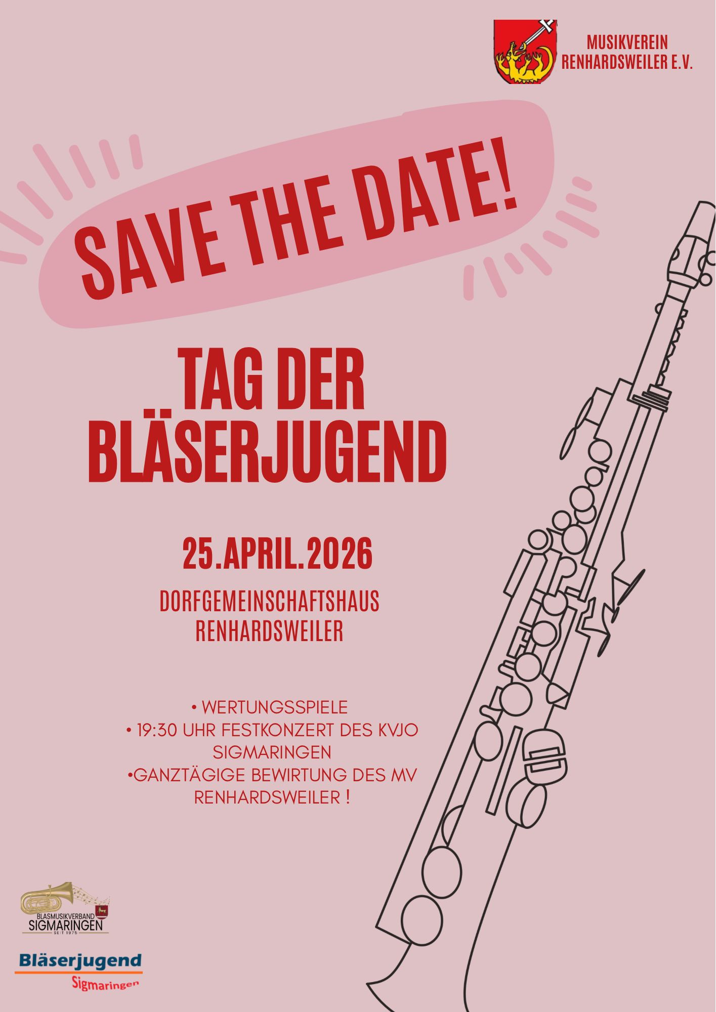 Am Samstag, 25. April 2026, lädt die Bläserjugend Sigmaringen zum diesjährigen Tag der Bläserjugend nach Renhardsweiler ein. Der Musikverein Renhardsweiler übernimmt in diesem Jahr die Ausrichtung und schafft mit großem Engagement den passenden Rahmen für einen Tag, der ganz im Zeichen der musikalischen Jugend steht. Besonders erfreulich ist, dass die Veranstaltung erneut unter der Schirmherrschaft von Landrätin Stefanie Bürkle stattfinden darf – ein starkes Zeichen für die Bedeutung der Jugendarbeit im Landkreis.